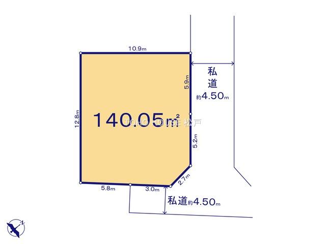 - 北東側4.5m私道に