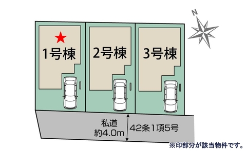 - 南側4m私道に