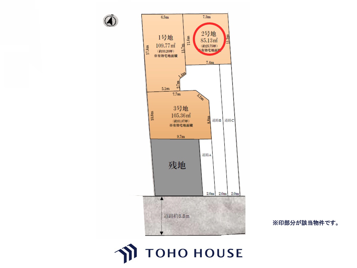 - ■道路部分持分60.88平米■木造で地階を有しない階数が3階建以下の住宅建築計画または更地利用の方へ向けた土地販売です。 ■土地面積は有効宅地面積です。